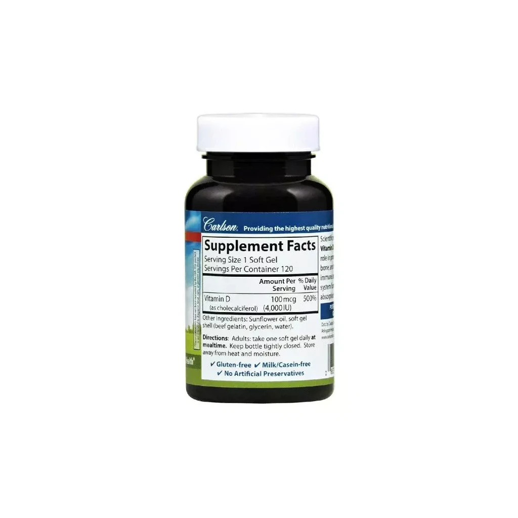 Вітамінно-мінеральний комплекс Carlson Вітамін D3, 4000 МО, призначений для підтримки імунної системи, опорно-рухового апарату, серцево-судинної системи, а також для покращення стану при підвищеному цукрі та шкірних захворюваннях. Цей продукт також сприяє нормалізації функцій ендокринної системи, що робить його ідеальним вибором для чоловіків та жінок, які прагнуть підтримувати своє здоров’я на високому рівні.