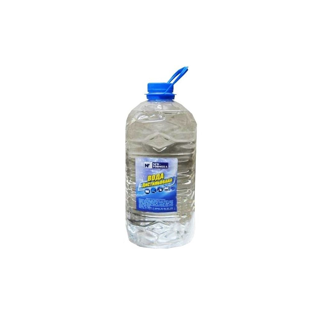 Дистильована вода NEW FORMULA являє собою прозору рідину в пластиковій каністрі.