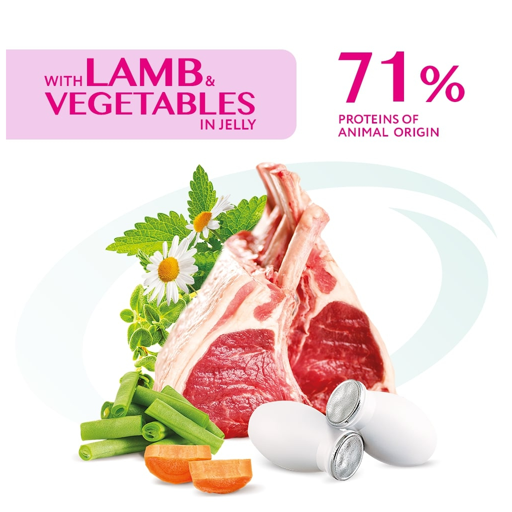 Вологий корм для кішок Optimeal зі смаком ягняти і овочів — це досконале основне годування для вашого улюбленця. Ягнятина в складі забезпечує легкозасвоюваний тваринний протеїн, який сприяє здоровому травленню. Високий вміст очищеної води підтримує здоров’я сечовидільної системи. Корм збагачений комплексом Immunity Support Mix, до якого входять корисні трави, ягоди та пребіотики для зміцнення імунітету.