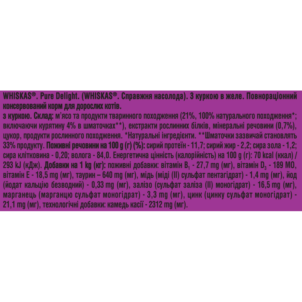 Вологий корм для кішок Whiskas Pure Delight курка в желе 85 г (5900951303333)