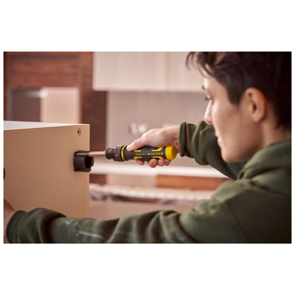 Викрутка Stanley FATMAX “Speed Drive” з храповим механізмом, з трьома вставками (FMHT62692-0) – це інноваційний інструмент, який значно полегшує процес загортання гвинтів. ТЕХНОЛОГІЯ SPEED DRIVE дозволяє загортати гвинти у 2 рази швидше, забезпечуючи високу швидкість та ефективність. Ви просто повертаєте рукоятку вліво або вправо, і плавна храпова дія продовжується без перерви, створюючи «ефект 360°», що дозволяє виконувати роботу вдвічі швидше.