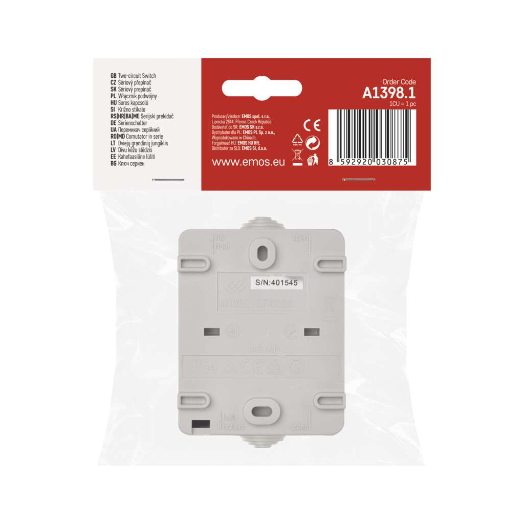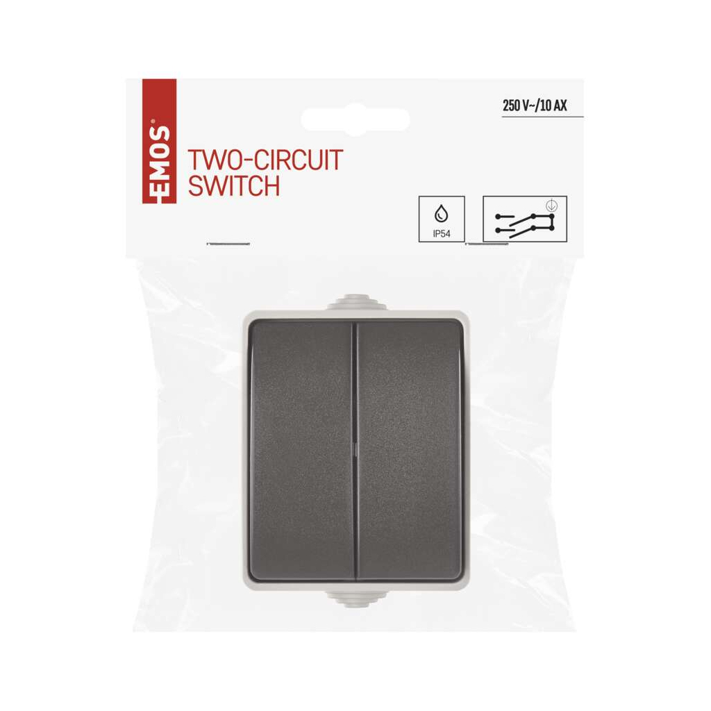 Вимикач EMOS C.5 IP54 подвійний (A1398.1) – це надійний та функціональний пристрій, призначений для зовнішнього використання. Завдяки ступеню захисту IP54, він забезпечує високу стійкість до вологи та пилу, що робить його ідеальним вибором для монтажу в умовах вулиці. Два клавішних кнопки дозволяють зручно керувати електроприладами, а максимальний струм у 10 А та напруга до 250 В гарантують безпечну експлуатацію.