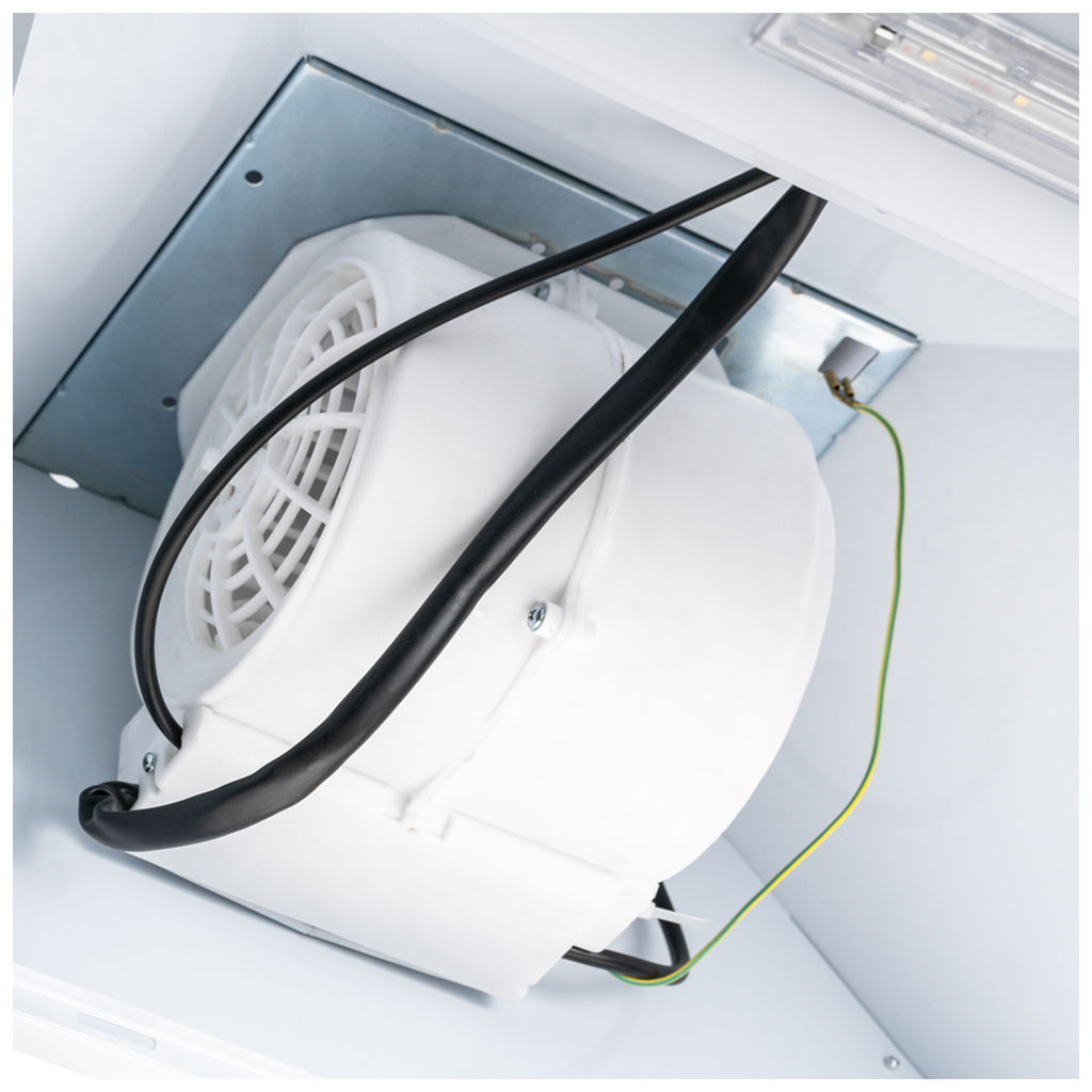 Ця витяжка виготовлена з металу, що забезпечує її довговічність та надійність. Вона має три швидкісні режими, що дозволяє легко налаштувати її роботу під ваші потреби. Лампа потужністю 28 Вт забезпечує достатнє освітлення робочої зони. Витяжка Pyramida KT 60 WH – це не лише потужний, але й стильний елемент вашої кухні, що підходить для будь-якого інтер’єру.