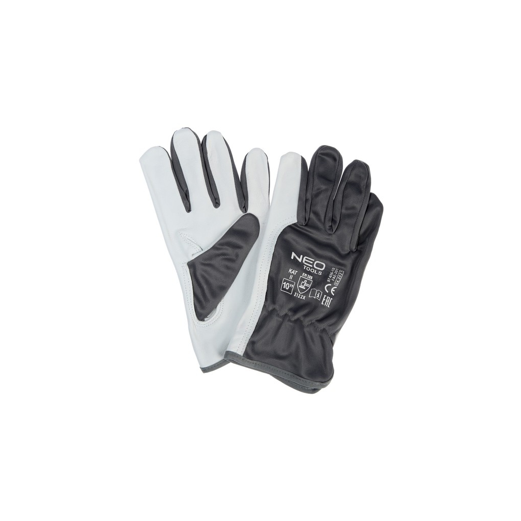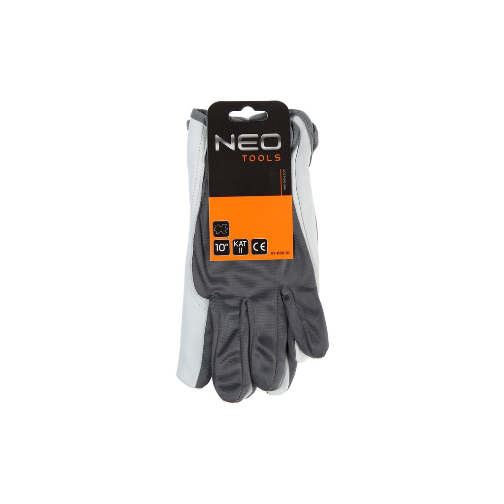 Основні технічні характеристики: виробник – Neo Tools, модель – козяча шкіра, розмір – 10", тип – один комплект, кількість – 1 пара, матеріал – козяча шкіра, додатково – манжет із липучкою, країна виробництва – Пакистан.