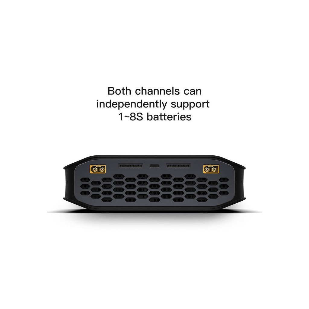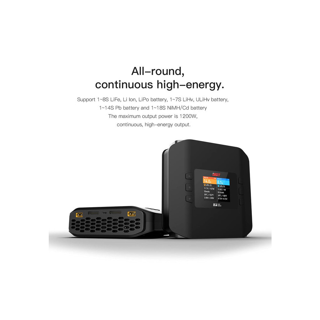 Зарядний пристрій Lipo з подвійним режимом змінного/постійного струму: наш зарядний пристрій Lipo має модель подвійного входу змінного струму 400 Вт/постійного струму DC600Wx2 з незалежним подвійним каналом, зарядний струм: 30AX2, макс. .K4 може отримати найновішу версію мікропрограми, гарантувати, що зарядний пристрій має оптимізовану продуктивність і постійну останню версію мікропрограми.