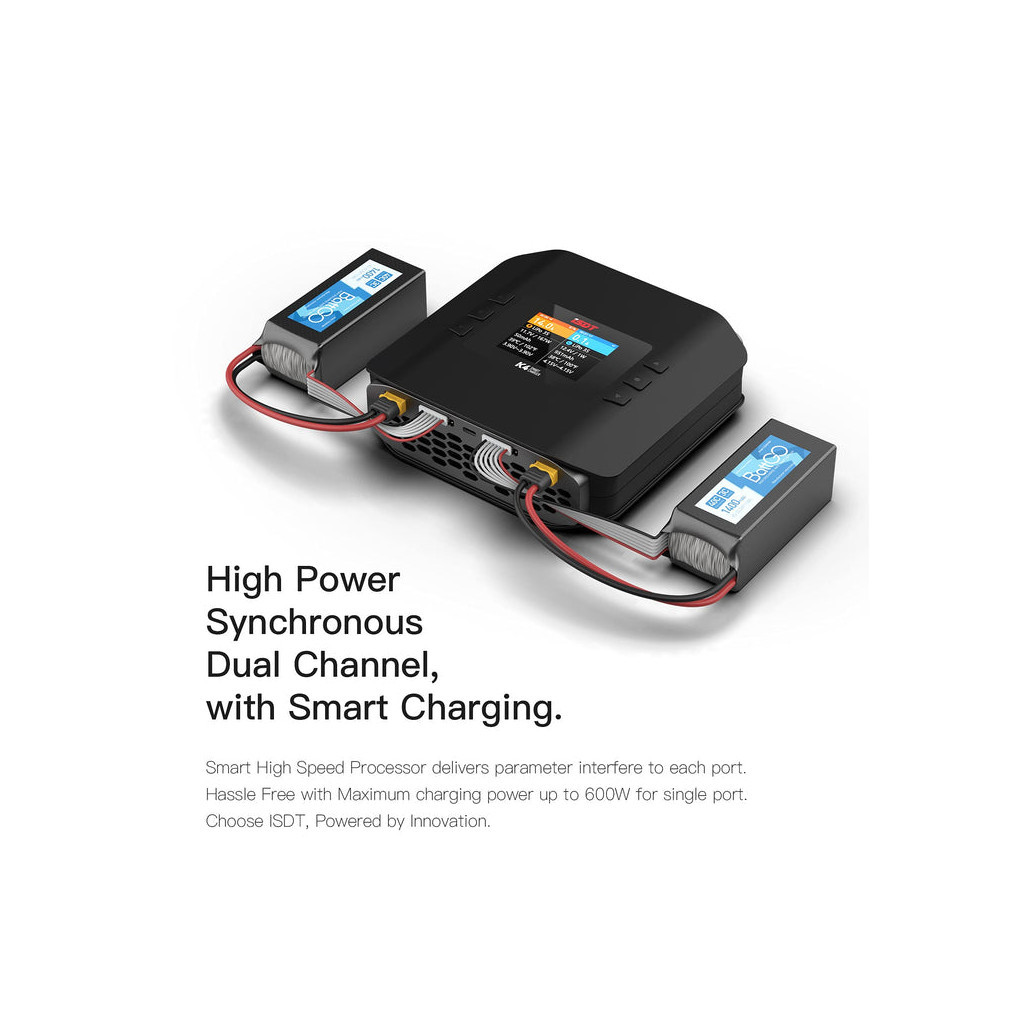 Сумісність із зарядним пристроєм ISDT із різними типами батарей: комплексне керування для батарей LiFe, LiIon, LiPo 1~8S; LiHv, ULiHv 1~7S; Pb 1~14S; NiMH/Cd 1~18s батарей, автоматична ідентифікація типу батареї з інтелектуальним узгодженням алгоритму заряду.