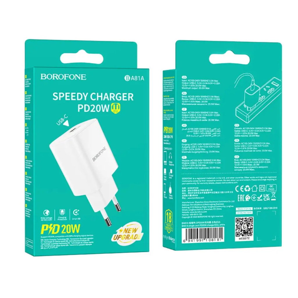 Зарядний пристрій BOROFONE 1xUSB-C PD20W BA81A white (6941991108181)