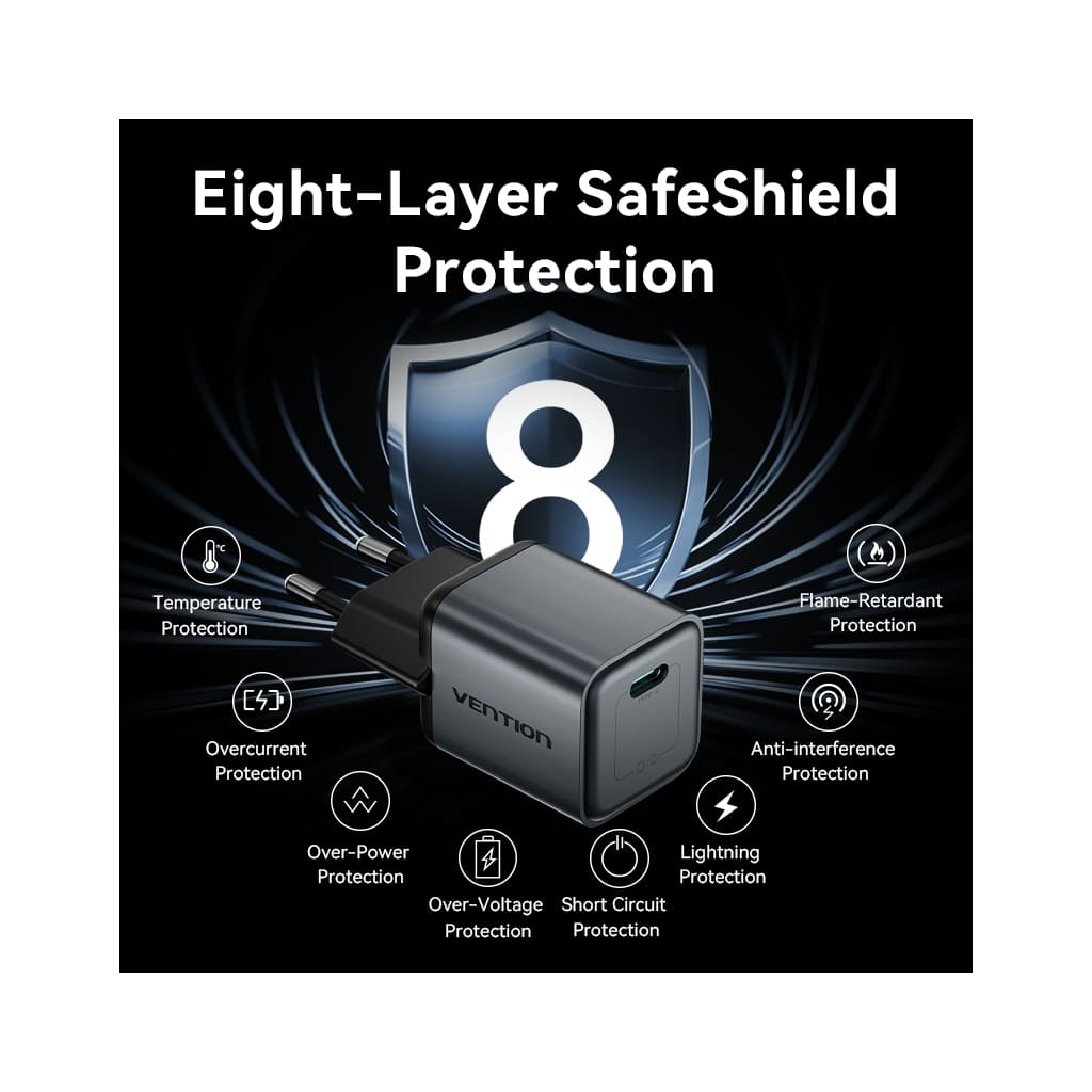 Зарядний пристрій VENTION USB-C PD20W GaN gray (FEVH0-EU) — це незамінний помічник для всіх, хто цінує швидкість і надійність при заряджанні своїх сучасних гаджетів. Він поєднує в собі передові технології та сучасний дизайн, відповідаючи потребам найвимогливіших користувачів.