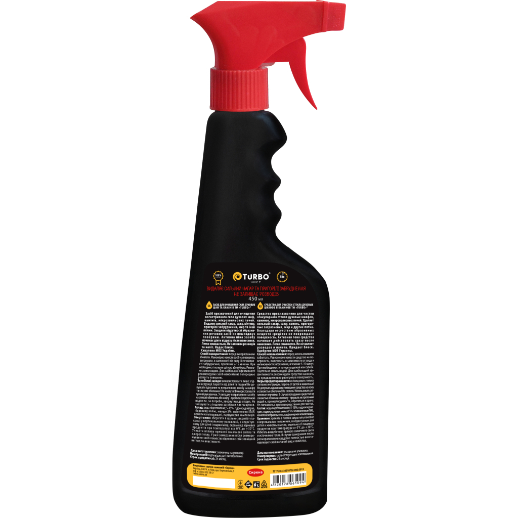 TURBOчист – це ефективний засіб для чищення духовок, спеціально розроблений для скла духових шаф і камінів. Об'єм 450 мл дозволяє комфортно використовувати продукт для очищення різних поверхонь, забезпечуючи бездоганний результат без зайвих зусиль.