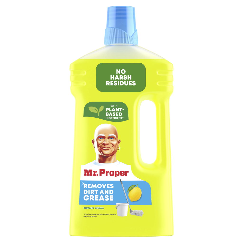 Mr. Proper чистота і блиск — рідкий засіб для прибирання різних поверхонь із приємним ароматом лимона. Засіб відмиває підлоги та стіни за менший час і з меншими зусиллями, ніж інші засоби. Він ефективно видаляє забруднення, не залишає розводів і головне — його не потрібно змивати.
