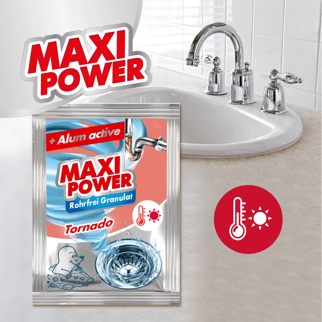 Цей засіб призначений для очищення труб від засмічень та забруднень, що накопичуються з часом. Maxi Power Tornado не лише видаляє жир та залишки мила, але й знищує бактерії та мікроби, що сприяє покращенню гігієни у вашому домі. Спосіб застосування простий і зрозумілий, що робить його зручним у використанні. Обирайте Maxi Power Tornado для надійного очищення труб та підтримки чистоти у вашій системі водопостачання.