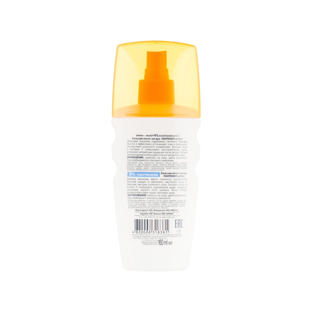 Біокон Бальзам Пантенол Актив – це ефективний засіб після засмаги об'ємом 160 мл, призначений для відновлення та зволоження шкіри після перебування на сонці. Його формула містить активні компоненти, які заспокоюють шкіру, зменшують почервоніння та забезпечують тривале зволоження.