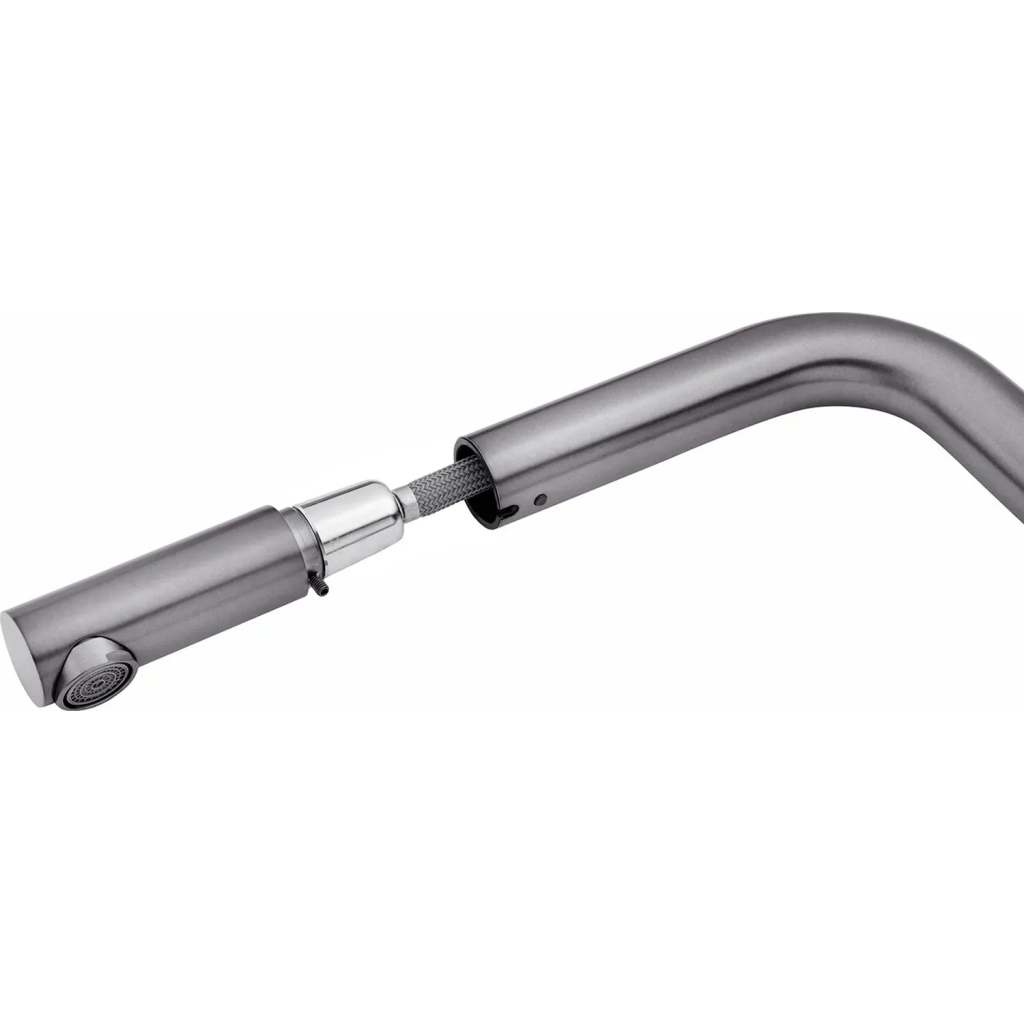 Змішувач Kroner Klassisch-PVD03918V – це ідеальний вибір для вашої кухні. Його одноважільний дизайн забезпечує зручність у використанні, а поворотний та висувний вилив дозволяє легко контролювати потік води. Виготовлений з нержавіючої сталі, цей змішувач не лише стильний, але й надзвичайно міцний, що гарантує довговічність у використанні.
