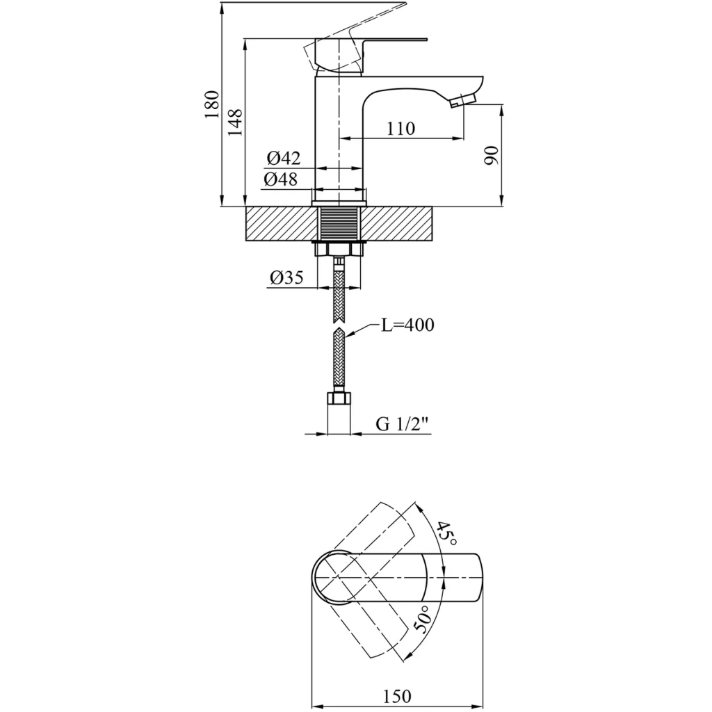 - Комплект поставки: змішувач, шланги підведення води, кріплення, інструкція