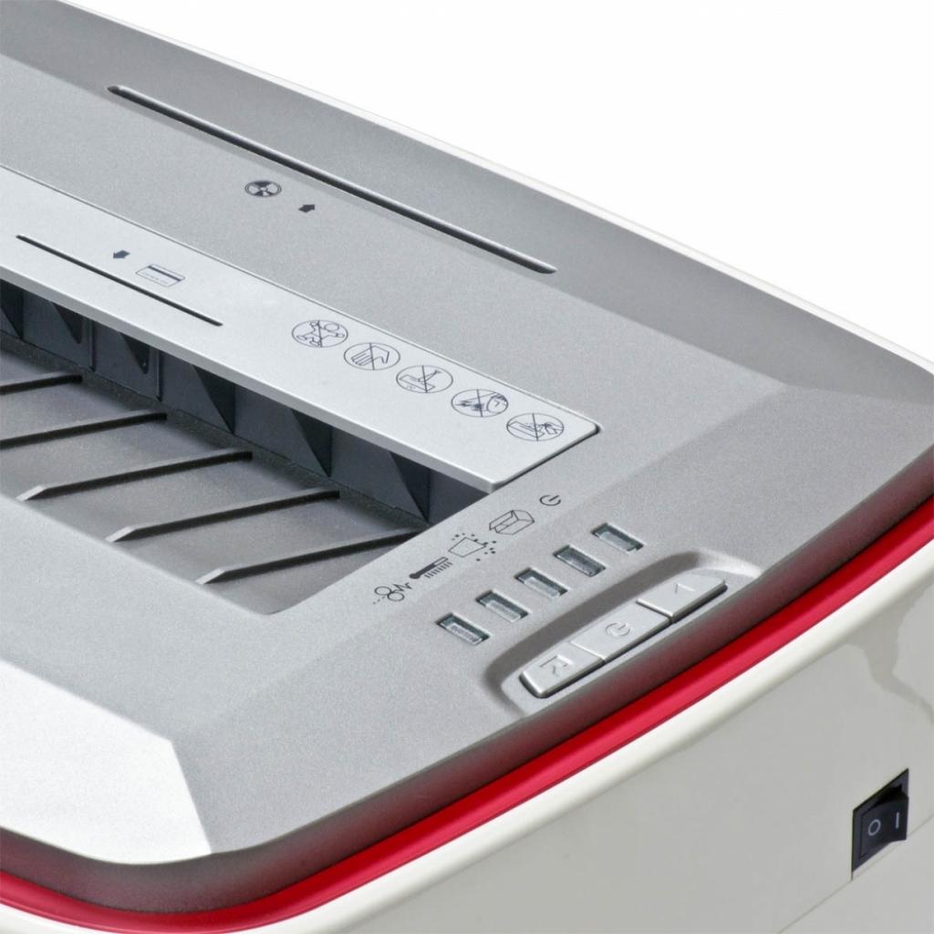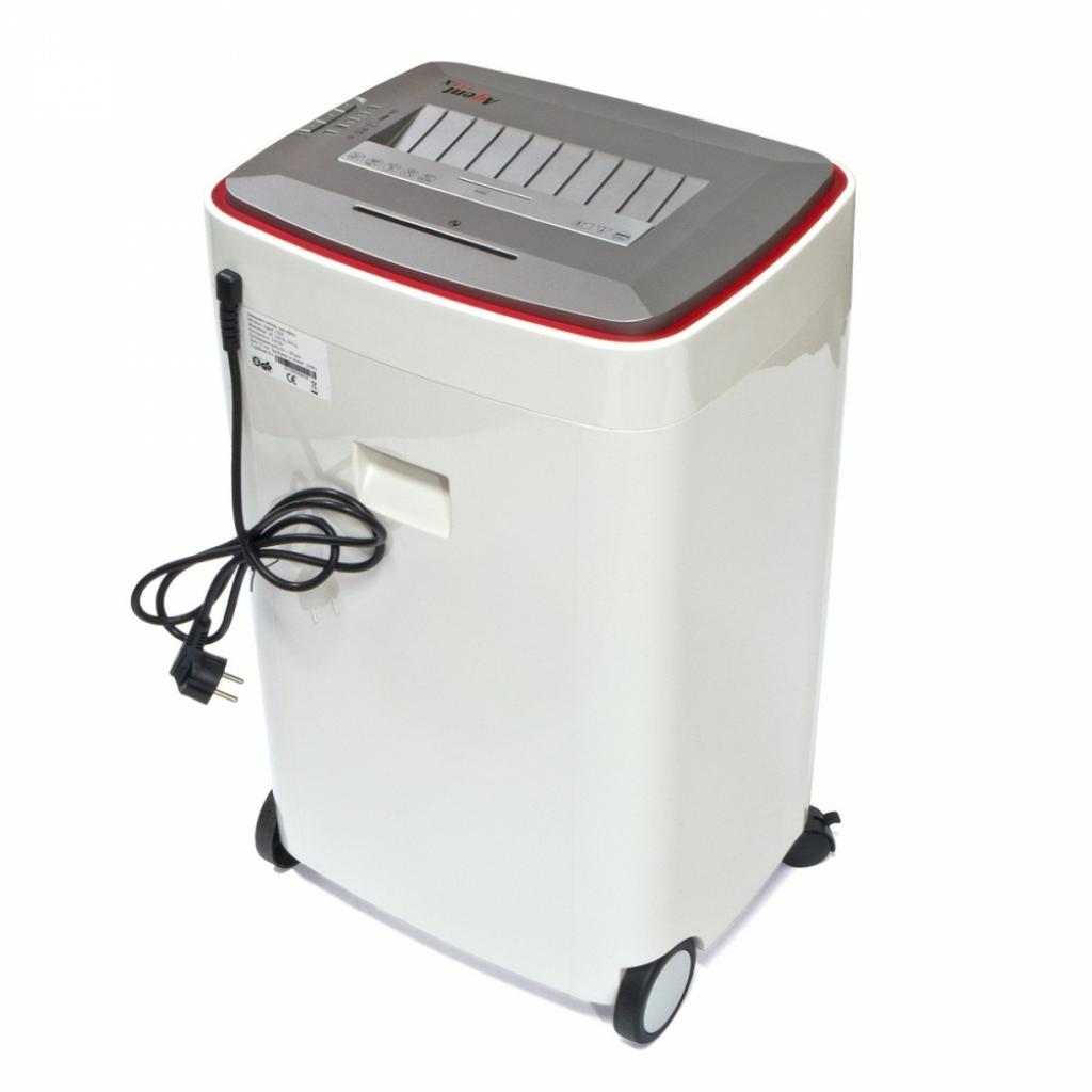 Основні технічні характеристики включають робочу ширину 240 мм, швидкість знищення 3 м/хв та об’єм кошика 38 л. Модель здатна знищувати до 16 аркушів формату А4 (70 г) за один раз. Розмір фрагментів після знищення становить 2 х 10 мм, що гарантує високу ступінь безпеки.