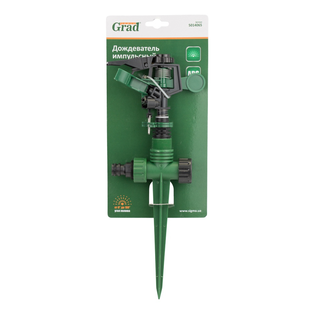 Дощувач імпульсний на пластиковому кілочку (ABS) GRAD (5014065) призначений для секторно-кругового поливу присадибних ділянок, городів, клумб, газонів і т.д.