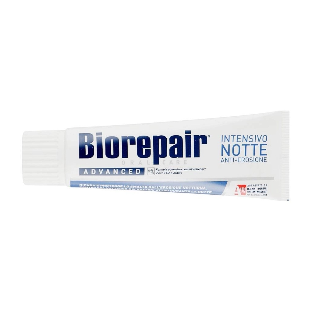 Зубна паста Biorepair Інтенсивне нічне відновлення 75 мл – це професійний засіб для щоденного догляду за порожниною рота, що має антибактеріальну дію та сприяє профілактиці карієсу. Завдяки своїй формулі, зубна паста забезпечує інтенсивне відновлення зубної емалі під час нічного сну, що робить її ідеальним вибором для тих, хто дбає про здоров'я своїх зубів.