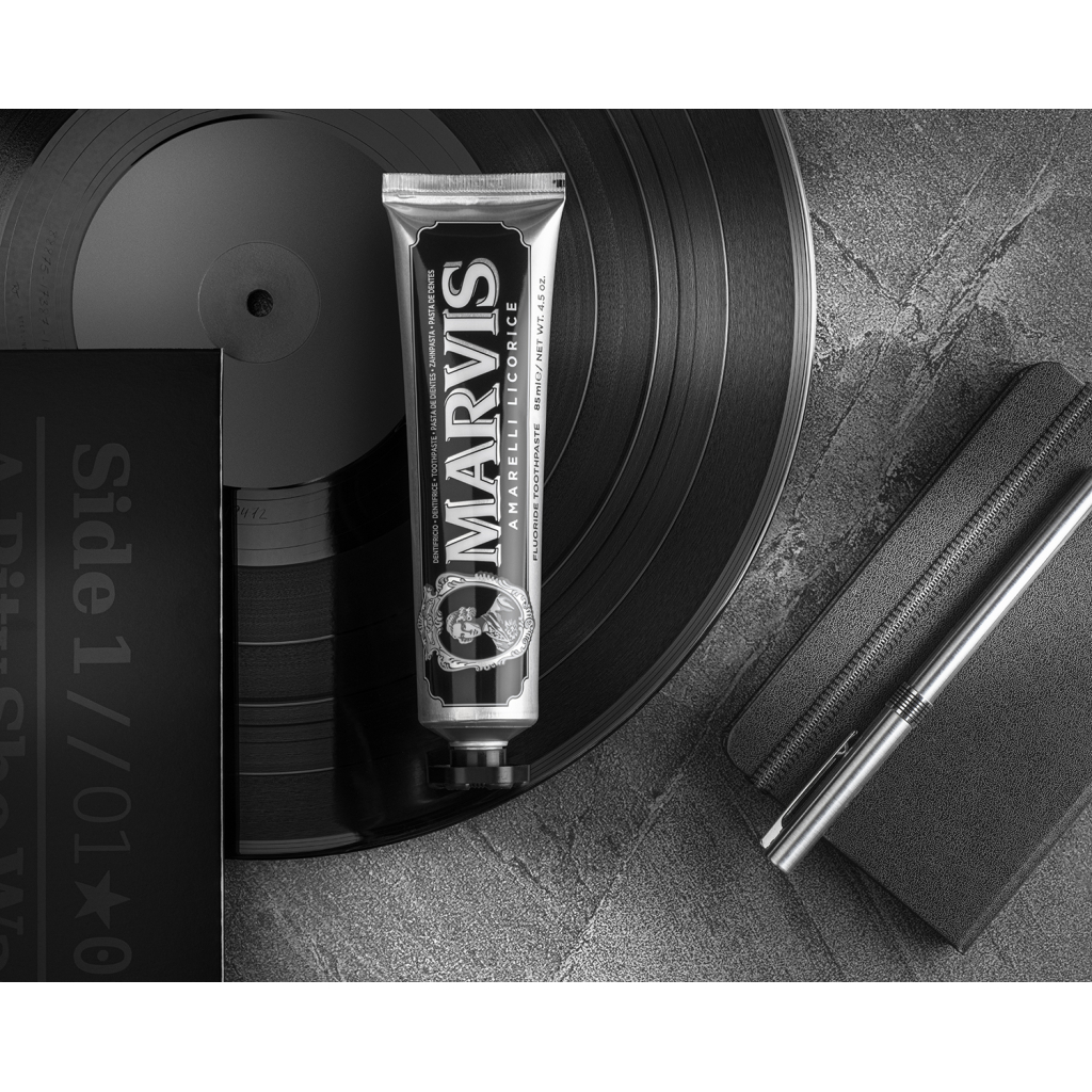 Кремоподібна зубна паста для всіх типів зубів і ясен. Багата на корисні елементи, має насичений смак, сприяє видаленню нальоту та надає усмішці розкішної білості. Завдяки співпраці з легендарною компанією Amarelli, яка з 1731 року виробляє лакрицю, з’явився насичений і чарівний аромат, що поєднує нотки лакриці й освіжної м’яти.