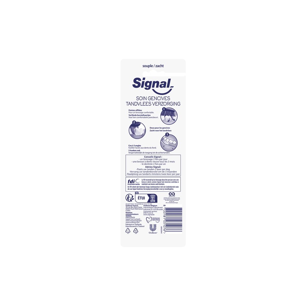 Зубна щітка Signal Потрійний захист має спеціально розроблену щетину, яка дбайливо очищає зуби, не пошкоджуючи емаль. Її зручна ручка забезпечує комфортний захват, що робить процес чищення зубів простим і приємним. Завдяки м'якій щетині, щітка підходить для людей з чутливими яснами, гарантуючи ефективне очищення без дискомфорту. Обирайте Signal для щоденного догляду за вашою усмішкою!
